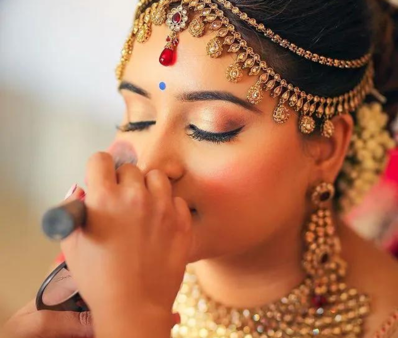 A wedding day is the most important part in every bride's life. A day to cherish and remember forever. The one day you can go back again and adore at the beautiful photographs of you and your better half. This makes the point that you need to look at your best, with the perfect bridal makeup and hairdo on your wedding album even after years. You are the main core attention in your wedding so you need concentrate on your wedding dress, hairstyles, accessories and above all a perfect bridal makeup to have a pleasant and lavishing look on your big day. In this makeup foundation, contnour, blusher and highliter to enhance your features.