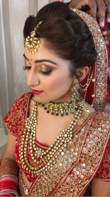 A wedding day is the most important part in every bride's life. A day to cherish and remember forever. The one day you can go back again and adore at the beautiful photographs of you and your better half. This makes the point that you need to look at your best, with the perfect bridal makeup and hairdo on your wedding album even after years. You are the main core attention in your wedding so you need concentrate on your wedding dress, hairstyles, accessories and above all a perfect bridal makeup to have a pleasant and lavishing look on your big day. In Air Brush Bridal makeup with use of Air Brush Gun with silicon liquid foundation. Also use eye lenses & eye lashes to look more beautiful.